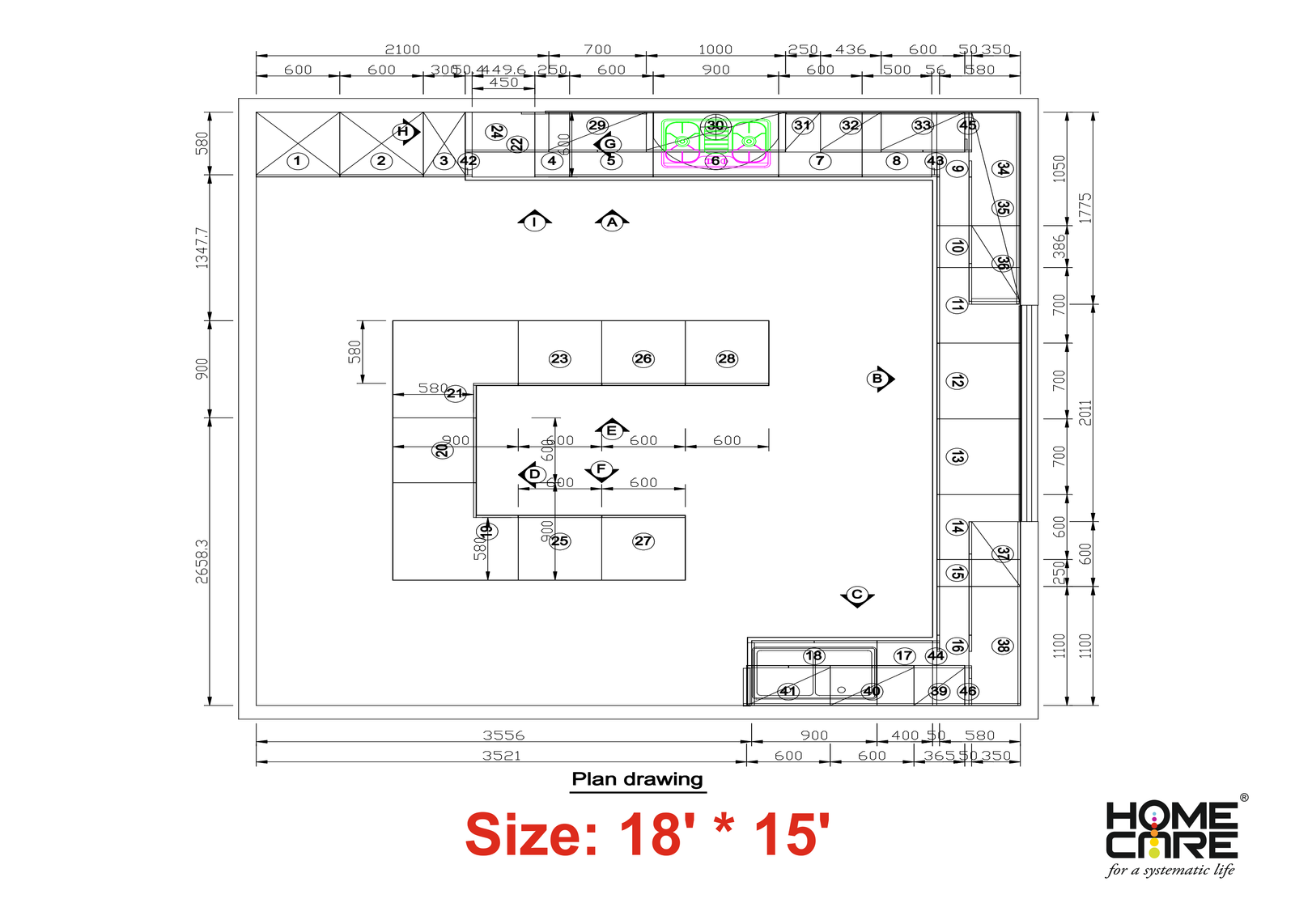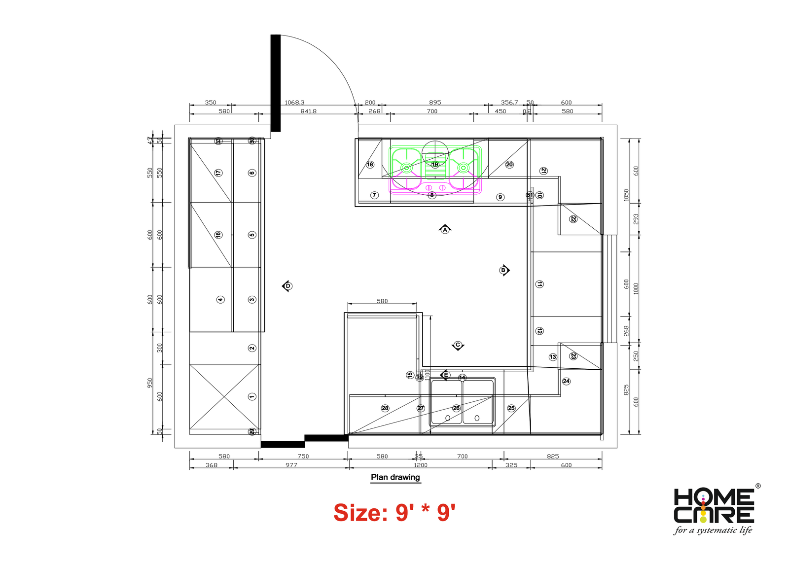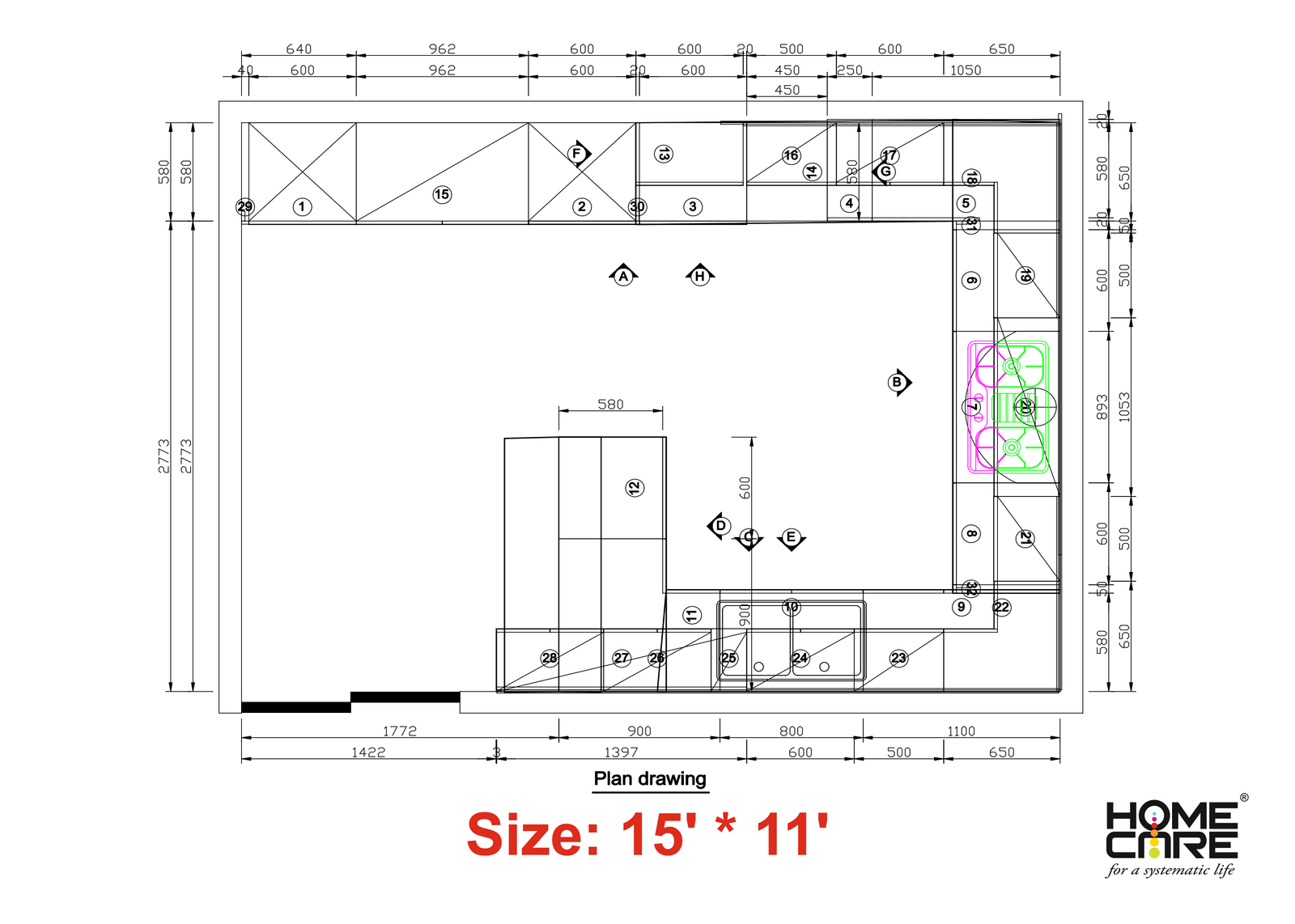 Drawing- G-Shape Kitchen