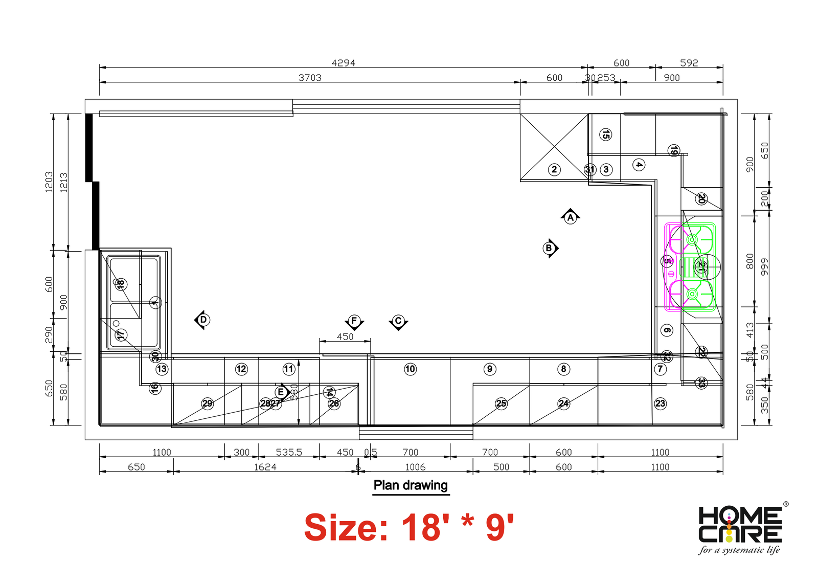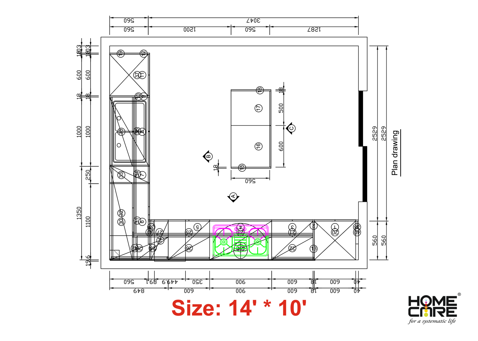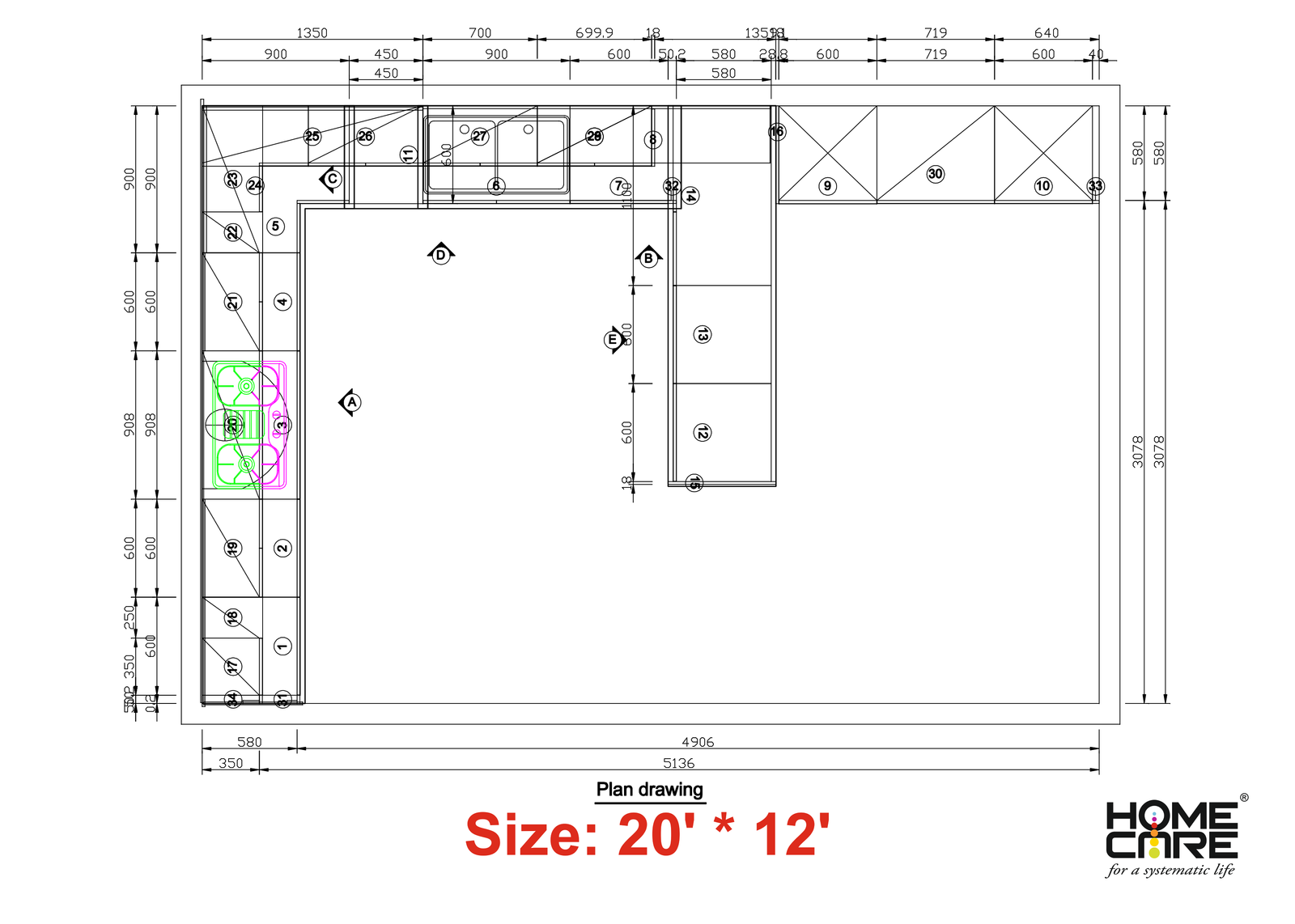 Drawing- G-Shape Kitchen