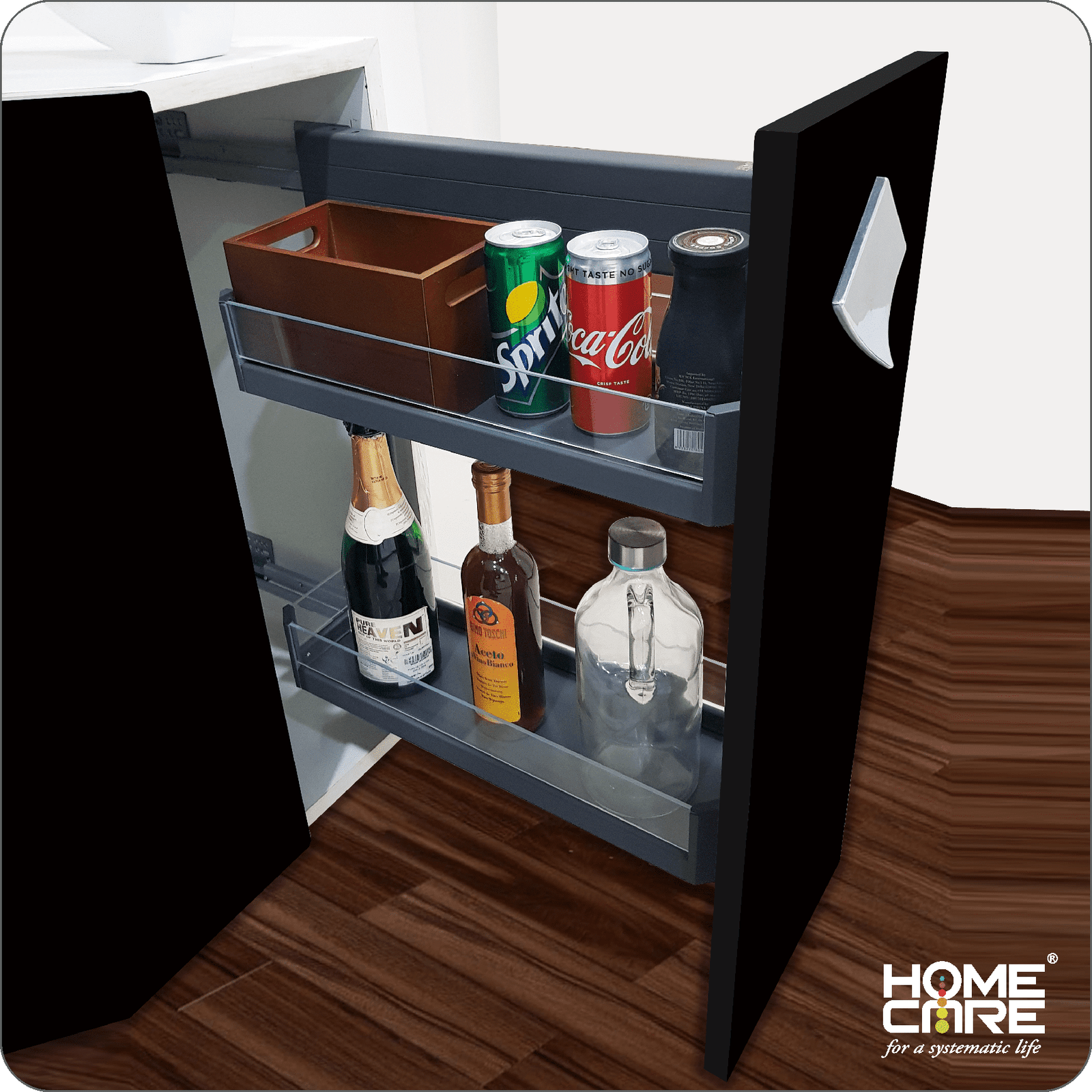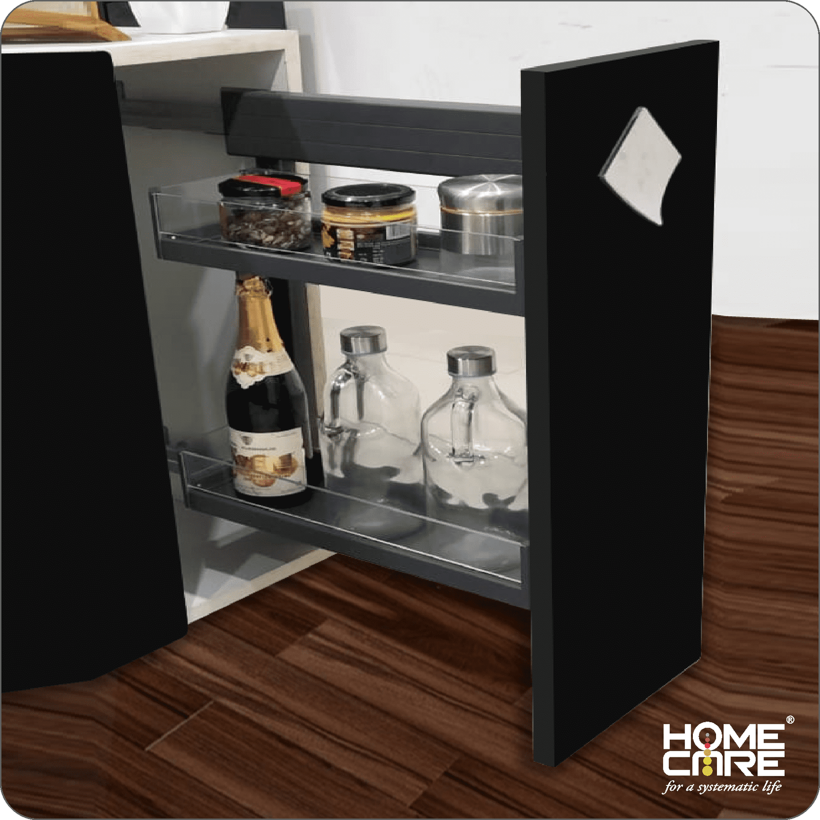 2. Side Mounting pullout can be conveniently used for storage of bottles, Cans or Souce or many Spices Bottle on the bottom shelf & Upper Shelf.
