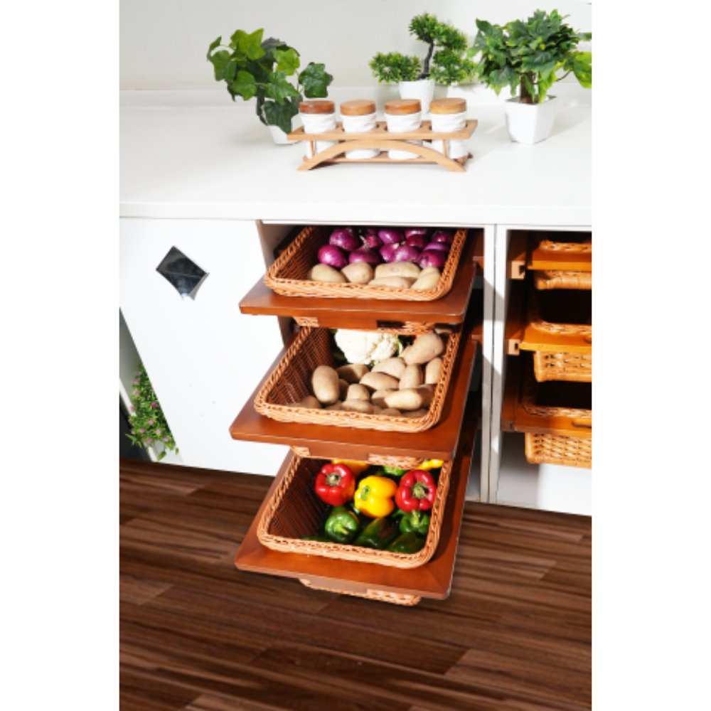 1. High quality solid beech PVC material Easy pull out pvc wicker basket come with SS 304 locking system.