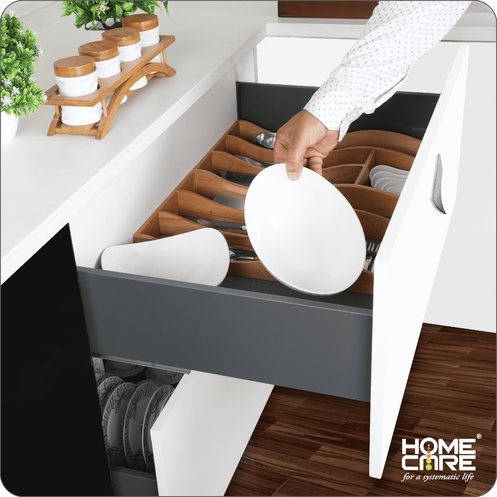 6. The drawers can accommodate a variety of cutlery inserts and organisation trays.